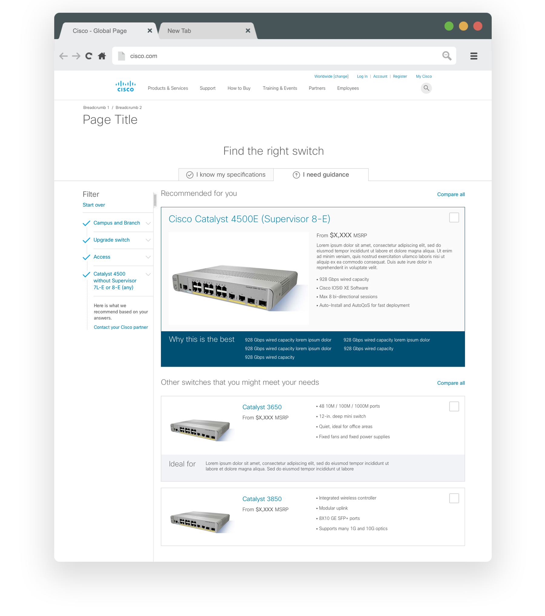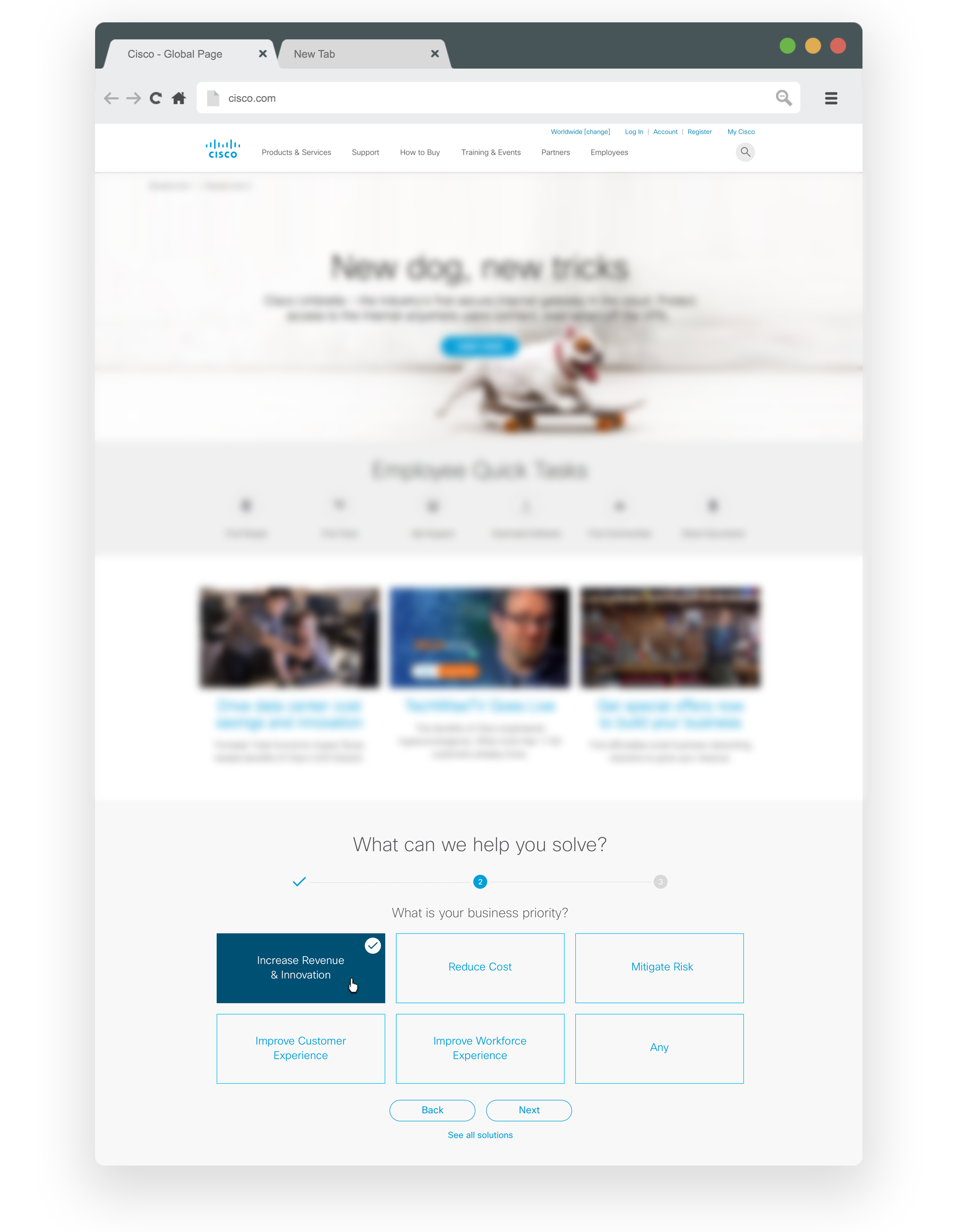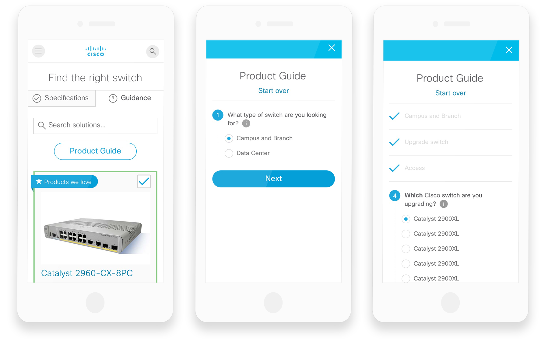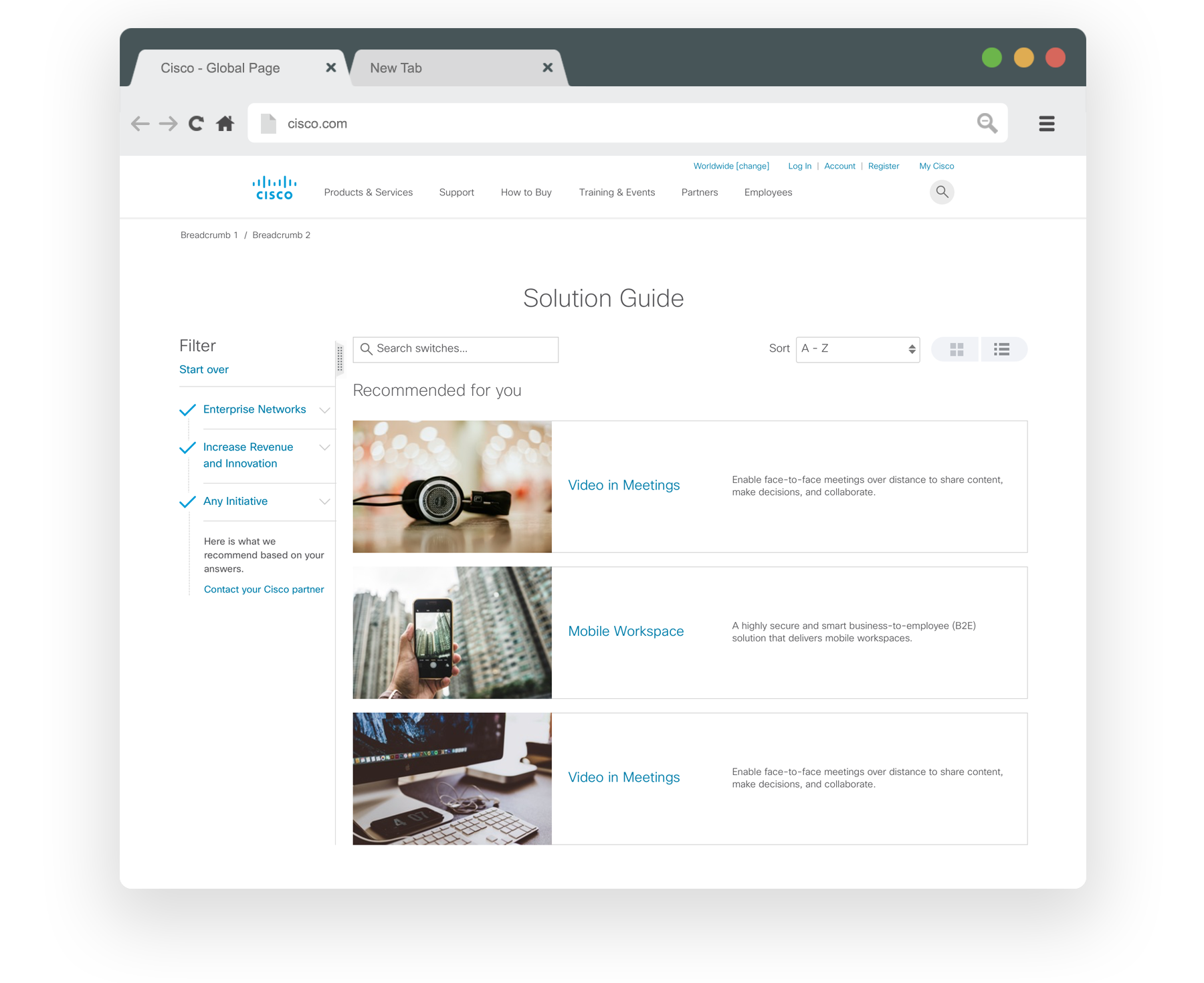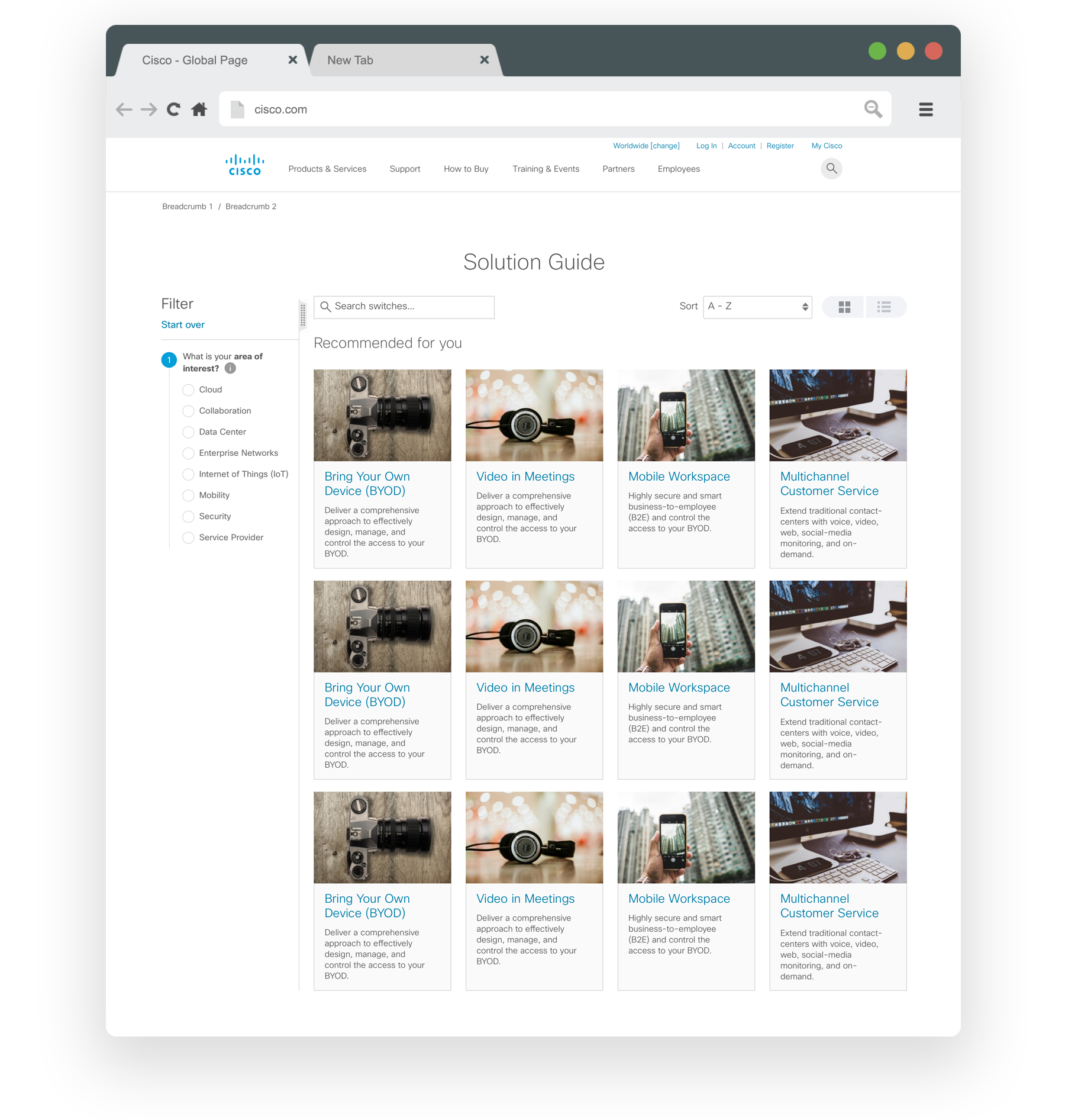 Cisco has over 600 products sold all over the world. Users were struggling to narrow down the products to find what they needed. The challenge was to create a design that would assist the user in finding the best solution.