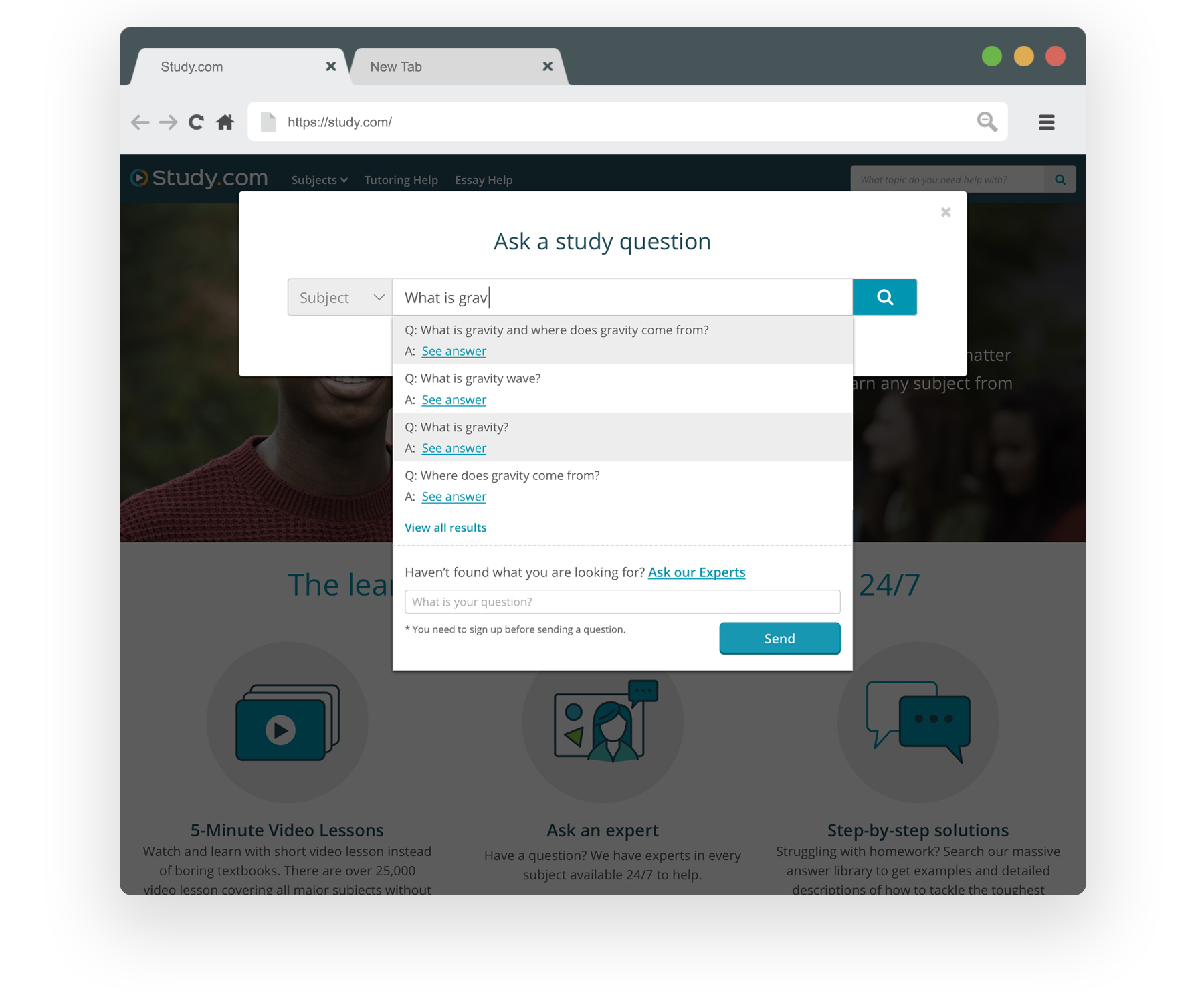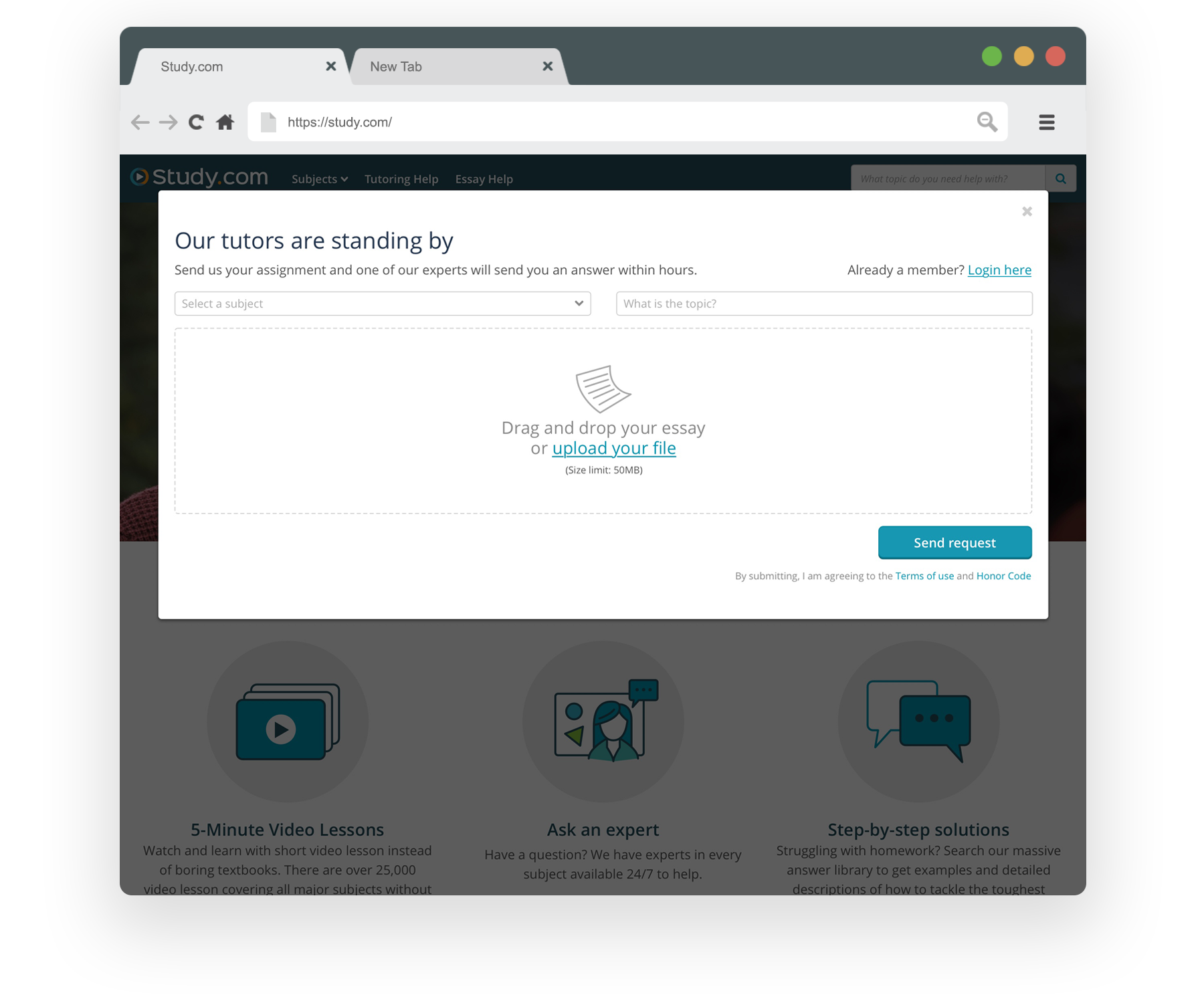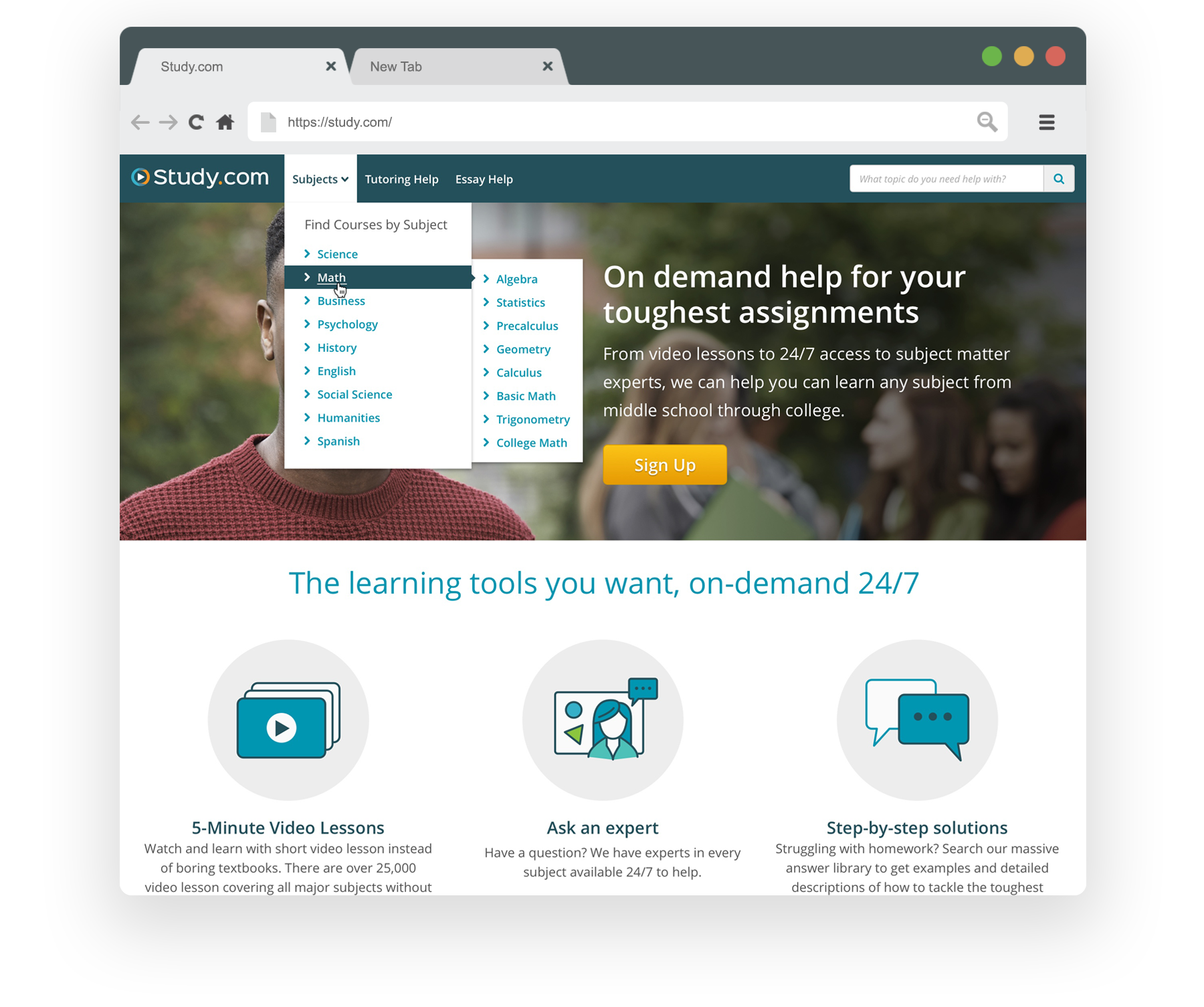 The student hub page is a gateway for students that found Study.com via a search engine.